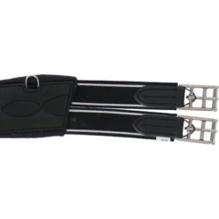 Synthetische, anatomisch gevormde singel met comfort gel, waardoor het paard beter kan ademen en optimale bewegingsvrijheid heeft. De airflow gelpads bedekken een groot deel van de paardenbuik zonder te knellen. De speciale vormgeving vermindert druk op gevoelige organen en voorkomt oververhitting. De singel heeft elastiek aan twee zijden en is in het midden voorzien van een D-ring en een gepatenteerde veiligheidshaak voor de bevestiging van eventuele hulpteugels. Deze haak is op zo’n manier vormgegeven dat er geen extra musketonhaken of gespriempjes nodig zijn. Het risico op verstrikt raken of vallen tijdens het springen wordt op deze manier voorkomen. De elastische uiteinden bieden extra comfort en het paard is hierdoor gemakkelijker aan te singelen. Ook blijft het zadel hierdoor goed en recht op het paard liggen. Aan beide zijden heeft de singel ook een extra D-ring voor de bevestiging van eventuele hulpteugels of voortuig. De singel is voorzien van roestvrijstalen rolgespen met een elastiekje eromheen. Hierdoor valt tijdens het aansingelen de doorn van de gesp gemakkelijk in het gat van de singelstoot, wat het aansingelen nog extra vergemakkelijkt.
