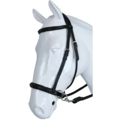 Het is gemaakt van kwalitatief Engels leder dat soepel is en goed aansluit op het paardenhoofd. Inclusief teugel met handstops en teugelstops.