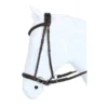 F.R.A. bitloos systeem 3: bitloze optomingen zijn niet nieuw! Eeuwenlang werd een bitloze optoming als vanzelfsprekend ervaren, voordat er ooit aan werd gedacht iets in de mond van het paard te stoppen legde de mens er simpelweg iets omheen. Een touw als halster was destijds voldoende en zo ontstond de eerste bitloze optoming. In combinatie met de ondersteunende gewichts-,been- en gevoelshulpen onderhoudt de ruiterhand via de teugels kontakt, niet met de mond, maar met het hoofd van het paard. Werkingsprincipe: druk op neus èn wangen, directe teugelvoering. Bouw: In systeem 3 kunnen we naast de F.R.A.® sidepull ook de diverse F.R.A.® knoophalsters onderbrengen. Sidepull: De lederen neusriem van deze eenvoudige optoming eindigt op beide wangen in een ring waaraan de kinriem en het bakstuk worden bevestigd. Aan een tweede ring op dezelfde plaats worden de teugels bevestigd hetgeen de teugelvoering verfijnt. Schuin verbindt een klein lederen riempje de neusriem nog eens extra met het bakstuk, dat houdt de neusriem netjes op zijn plaats en geeft de ruiter de mogelijkheid druk op de wang uit te oefenen.