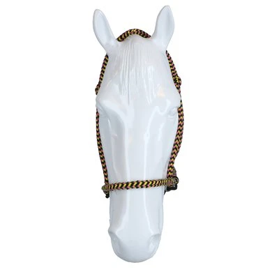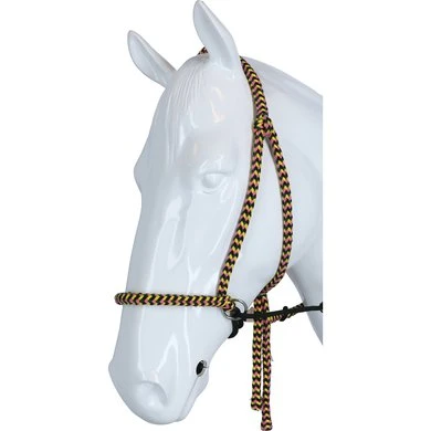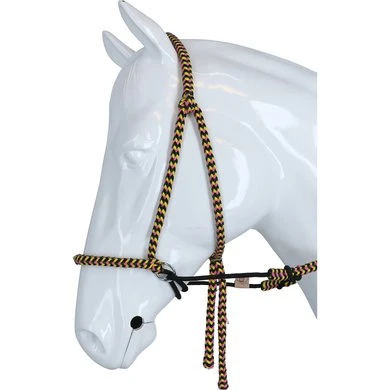 F.R.A. bitloos systeem 4: bitloze optomingen zijn niet nieuw! Eeuwenlang werd een bitloze optoming als vanzelfsprekend ervaren, voordat er ooit aan werd gedacht iets in de mond van het paard te stoppen legde de mens er simpelweg iets omheen. Een touw als halster was destijds voldoende en zo ontstond de eerste bitloze optoming. In combinatie met de ondersteunende gewichts-,been- en gevoelshulpen onderhoudt de ruiterhand via de teugels kontakt, niet met de mond, maar met het hoofd van het paard. Werkingsprincipe: druk op neus en wangen, kingekruiste teugelvoering. Bouw: In dit systeem eindigt de neusriem aan beide zijden met een ring waaraan de bakstukken en de beide kinkruisriemen zijn bevestigd. Deze riemen vinden hun kruisgeleiding door een ring aan het einde van een kort stukje leder dat op zich dan weer aan de ringen van de neusriem is bevestigd. Gevolg is dat het kruislingse geheel wat lager hangt dan bij kaakgekruiste optomingen (zie systeem 5). Aan de uiteinden van de kruisriemen worden de teugels bevestigd. Verder is dit hoofdstel eenvoudig in uitvoering door het ontbreken van een frontriem, een keelriem en de stoot en gesp die we normaal op een neusriem aantreffen. Aan de linkerzijde vind je een gespverbinding in het bakstuk, het is de enige gesp, die nodig is om het hoofdstel op maat te maken. Éénmaal op maat, dan schuif je het hoofdstel van dit systeem simpelweg op het paardenhoofd waarna je niets meer hoeft vast te maken. Voor de serie F.R.A.® katoenen hoofdstelen uit systeem 4 geldt in essentie het hier beschrevene, uiteraard is er in die lijn van hoofdstellen geen sprake van gespverbindingen of andere op leder betrekking hebbende omschrijvingen. Ligging: Evenals bij de meeste bitloze optomingen geldt ook voor de hoofdstellen uit systeem 4, dat de neusriem op het harde gedeelte van de neus moet liggen, ongeveer daar waar het neusbeen begint. De bijzondere bouw van deze hoofdstellen zorgen voor een goede en vaste ligging op het paardenhoofd zonder dat je iets behoeft vast te maken. Inwerking: De kingekruiste riemen zorgen ervoor dat wanneer je links of rechts vraagt, het paard druk aan de andere kant op neus en wang krijgt en vervolgens de hand van de ruiter volgt: wendingen dus als gevolg van druk. Gelijktijdige ophoudingen aan beide teugels sluiten de neusriem en geven mogelijkheden tot halthouden of tempowisselingen. Het genoemde vragen van linker, rechter of beide teugels zal door de indirecte teugelvoering altijd een bepaalde mate van dosering in zich hebben, het is deze dosering die de mate van discriminerende inwerking bepaald. Dit heeft tot gevolg dat een gewenste wijziging in de mate van discriminatie altijd in een vloeiend effect tot stand zal komen. Vanzelfsprekend worden teugelhulpen ondersteund met overige ondersteunende hulpen. Het verbindigsriempje dat de teugelgeleidering aan de neusriem en het bakstuk verbindt zorgt voor een lage ligging en vrije doorvoer van de kruislingse kinkruisriemen hetgeen de release zeer ten goede komt. Extra aandacht bij dit type hoofdstellen zal altijd moeten worden gegeven aan het onderhoud van de gekruiste kinriemen, het juiste onderhoud zal het leder de soepelheid geven om in de ringen de juiste release blijvend te kunnen ondervinden. Het hoofdstel leent zich niet tot longeren met de enkele longe en daardoor dus ook niet tot pessoa longeren. Voor het longeren aan de dubbele lijnen neemt u de teugels af en gebruikt u de vrijkomende ringen voor het bevestigen van de lange lijnen. Geschiktheid: De optoming wordt in combinatie met licht teugelcontact gebruikt en is zeer geschikt voor gevoelige paarden. Daardoor leent de optoming zich ook in het bijzonder voor in te rijden jonge paarden en hoog in het bloed staande gevoelige dieren, in die categorie is het hoofdstel ook als menhoofdstel te gebruiken. Naast dat het hoofdstel als leidhalster te gebruiken is geeft het tevens volledige mondvrijheid hetgeen op buitenritten zijn voordeel kan bieden.