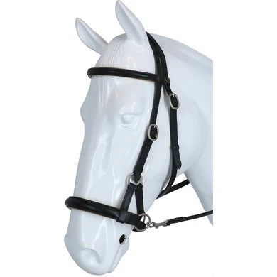 F.R.A. bitloos systeem 3: bitloze optomingen zijn niet nieuw! Eeuwenlang werd een bitloze optoming als vanzelfsprekend ervaren, voordat er ooit aan werd gedacht iets in de mond van het paard te stoppen legde de mens er simpelweg iets omheen. Een touw als halster was destijds voldoende en zo ontstond de eerste bitloze optoming. In combinatie met de ondersteunende gewichts-,been- en gevoelshulpen onderhoudt de ruiterhand via de teugels kontakt, niet met de mond, maar met het hoofd van het paard. Werkingsprincipe: druk op neus èn wangen, directe teugelvoering. Bouw: In systeem 3 kunnen we naast de F.R.A.® sidepull ook de diverse F.R.A.® knoophalsters onderbrengen. Sidepull: De lederen neusriem van deze eenvoudige optoming eindigt op beide wangen in een ring waaraan de kinriem en het bakstuk worden bevestigd. Aan een tweede ring op dezelfde plaats worden de teugels bevestigd hetgeen de teugelvoering verfijnt. Schuin verbindt een klein lederen riempje de neusriem nog eens extra met het bakstuk, dat houdt de neusriem netjes op zijn plaats en geeft de ruiter de mogelijkheid druk op de wang uit te oefenen.
