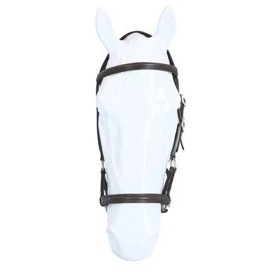 Touwknoophalsters: Touwknoophalsters zijn er in vele varianten en uitvoeringen, de F.R.A.® nh touwknoophalsters kenmerken zich door een veelvoud van maatvoeringen in de dikten 6, 7 en 8mm. Naast een basic uitvoering, de Babia, in 3 maten vind je een 6mm uitvoering, de Capal, in 5 maten en een 7mm uitvoering, de Pablo, in 3 maten. De laatste twee uitvoeringen zijn voorzien van een nubuck, resp. lederen nek- en neusbescherming en zijn gericht op professioneel gebruik. Juist de maatvoering van een knoophalster speelt een zeer belangrijke rol, het halster dient juist, zonder veel speling, aansluiting te vinden op het paardenhoofd. Ligging: Zoals bij alle bitloze optomingen geldt ook voor de sidepull en voor het knoophalster, dat de neusriem op het harde gedeelte van de neus moet liggen, ongeveer daar waar het neusbeen begint. De kinriem van de sidepull uitvoering mag gevoelsmatig ’te’ vast, maar beslist niet aangesnoerd zijn. Dit om verdraaiïng van het hoofdstel te voorkomen. Inwerking:Sidepull: Letterlijk vertaald betekent het woord sidepull : ’zijwaarts trekken’. Dat doet deze optoming dan ook, het van de hals afbrengen van de hand (openen) heeft tot gevolg dat de combinatie van de verbinding van het bakstuk naar de neusriem via beide riempjes en ring druk uitoefent op de tegenovergestelde wang: wendingen. Het vragen van de teugel (ophoudingen) heeft een discriminerende hulp van druk op de neus tot gevolg, hetgeen resulteert in tempowisselingen en òf halthouden. Dit uiteraard in combinatie met overige ondersteunende hulpen. Het hoofdstel leent zich tot normaal longeren uitsluitend met gebruik van een longeerbril. De longeerbril haakt u in de ringen waar normaal de teugels worden vastgemaakt. Voor het longeren aan de dubbele lijnen en pessoa longeren gebruikt u dezelfde ringen. (beschikbare modellen F.R.A.® pardoes en F.R.A.® shango)