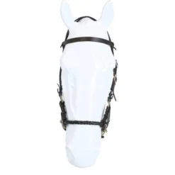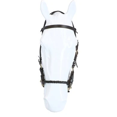 F.R.A. bitloos systeem 3: bitloze optomingen zijn niet nieuw! Eeuwenlang werd een bitloze optoming als vanzelfsprekend ervaren, voordat er ooit aan werd gedacht iets in de mond van het paard te stoppen legde de mens er simpelweg iets omheen. Een touw als halster was destijds voldoende en zo ontstond de eerste bitloze optoming. In combinatie met de ondersteunende gewichts-,been- en gevoelshulpen onderhoudt de ruiterhand via de teugels kontakt, niet met de mond, maar met het hoofd van het paard. Werkingsprincipe: druk op neus èn wangen, directe teugelvoering. Bouw: In systeem 3 kunnen we naast de F.R.A.® sidepull ook de diverse F.R.A.® knoophalsters onderbrengen. Sidepull: De lederen neusriem van deze eenvoudige optoming eindigt op beide wangen in een ring waaraan de kinriem en het bakstuk worden bevestigd. Aan een tweede ring op dezelfde plaats worden de teugels bevestigd hetgeen de teugelvoering verfijnt. Schuin verbindt een klein lederen riempje de neusriem nog eens extra met het bakstuk, dat houdt de neusriem netjes op zijn plaats en geeft de ruiter de mogelijkheid druk op de wang uit te oefenen.
