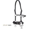 Touwknoophalsters: Touwknoophalsters zijn er in vele varianten en uitvoeringen, de F.R.A.® nh touwknoophalsters kenmerken zich door een veelvoud van maatvoeringen in de dikten 6, 7 en 8mm. Naast een basic uitvoering, de Babia, in 3 maten vind je een 6mm uitvoering, de Capal, in 5 maten en een 7mm uitvoering, de Pablo, in 3 maten. De laatste twee uitvoeringen zijn voorzien van een nubuck, resp. lederen nek- en neusbescherming en zijn gericht op professioneel gebruik. Juist de maatvoering van een knoophalster speelt een zeer belangrijke rol, het halster dient juist, zonder veel speling, aansluiting te vinden op het paardenhoofd. Ligging: Zoals bij alle bitloze optomingen geldt ook voor de sidepull en voor het knoophalster, dat de neusriem op het harde gedeelte van de neus moet liggen, ongeveer daar waar het neusbeen begint. De kinriem van de sidepull uitvoering mag gevoelsmatig ’te’ vast, maar beslist niet aangesnoerd zijn. Dit om verdraaiïng van het hoofdstel te voorkomen. Inwerking:Sidepull: Letterlijk vertaald betekent het woord sidepull : ’zijwaarts trekken’. Dat doet deze optoming dan ook, het van de hals afbrengen van de hand (openen) heeft tot gevolg dat de combinatie van de verbinding van het bakstuk naar de neusriem via beide riempjes en ring druk uitoefent op de tegenovergestelde wang: wendingen. Het vragen van de teugel (ophoudingen) heeft een discriminerende hulp van druk op de neus tot gevolg, hetgeen resulteert in tempowisselingen en òf halthouden. Dit uiteraard in combinatie met overige ondersteunende hulpen. Het hoofdstel leent zich tot normaal longeren uitsluitend met gebruik van een longeerbril. De longeerbril haakt u in de ringen waar normaal de teugels worden vastgemaakt. Voor het longeren aan de dubbele lijnen en pessoa longeren gebruikt u dezelfde ringen. (beschikbare modellen F.R.A.® pardoes en F.R.A.® shango)