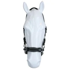 F.R.A. bitloos systeem 2: bitloze optomingen zijn niet nieuw! Eeuwenlang werd een bitloze optoming als vanzelfsprekend ervaren, voordat er ooit aan werd gedacht iets in de mond van het paard te stoppen legde de mens er simpelweg iets omheen. Een touw als halster was destijds voldoende en zo ontstond de eerste bitloze optoming. In combinatie met de ondersteunende gewichts-,been- en gevoelshulpen onderhoudt de ruiterhand via de teugels kontakt, niet met de mond, maar met het hoofd van het paard. Die teugelhulpen worden doorgegeven aan neus, nek en òf wangen. F.R.A.® bitloos biedt je een scala aan bitloze optomingen: maten van shetty tot shire, in diverse designs en materialen van katoen tot leder. F.R.A. bitloos systeem 2: Werkingsprincipe: druk op neus Algemeen: Paarden reageren van nature reflexmatig op druk op hun neus, elk onbedorven paard zal luisteren naar een op de neus uitgeoefende hulp door druk. Geschiktheid: Met de optoming is het opbouwen van een verfijnde, zeer duidelijke communicatie mogelijk. De optoming geeft zeer goede discriminerende signalen en de ervaren ruiter zal zich met deze bitloze optoming in relatief korte tijd goed voelen. In het algemeen biedt de optoming goede mogelijkheden voor het gebruik bij gevoelige paarden en in het bijzonder bij het inrijden van jonge paarden.
