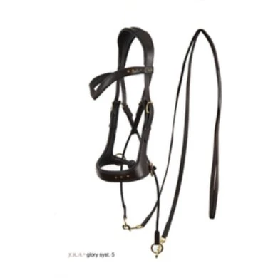 F.R.A. glory systeem 5 / bitl. hoofdstel kaakgekruist – bruin leder met kralen, anti slipteugel met brass clips