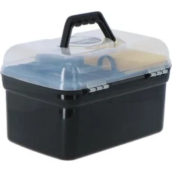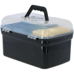 Deze Harrys Horse poetskist is de ideale poetskist om mee te starten! De poetskist is al compleet en heeft een uitneembare lade. Inhoud : hoevenkrabber met borstel, glans borstel, harde borstel, rosbostel met glitters, spons en manenkam.