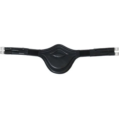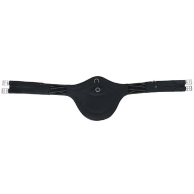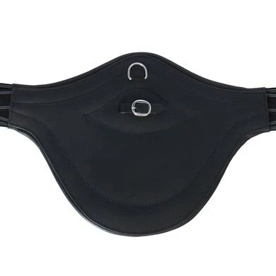 Lederen buikflapsingel met rundlederen voering. Beide zijden met elastiek aan het begin van de singelstoten voor extra bewegingsvrijheid bij de buik. Met rvs rolgespen en D-ring op buikflap (voor hulpteugels).