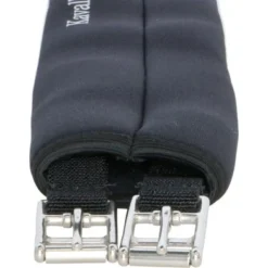 Singel van zacht neopreen, met RVS rolgespen en D-ring in het midden voor het eventuele gebruik van hulpteugels