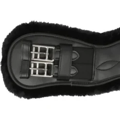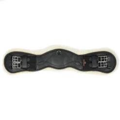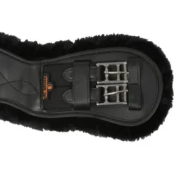 De Sheepskin Anatomic Short Girthis speciaal gevormd en ontworpen om de natuurlijke beweging van het paard te volgen waardoor deze comfort en vrijheid biedt. De schouders en de elle bogenvan het paard worden ontlast waardoor het paard beter kan ademen. Er is een D-ringvoorzien om de hulpteugels aan vast te maken. De singel is aan beide zijden uitgerust met driedubbele elastiek om zo de druk gelijkmatig te verdelen. Er werd eveneens een gesp voorzien om de borstriem aan vast te maken. De singel is gemaakt van artificieel leder waardoor deze zeer gemakkelijk te onderhouden is. Het artificieel leder neemt geen zweet op waardoor deze niet uitdroogt en geen barsten vertoont of verkleurt. De artificiële wollen voering wordt bevestigd met behulp van klittenband en is daardoor ook gemakkelijk afneembaar. De singel komt steeds met een set van twee wollen voeringen. Bij de zwarte singel zit een naturel en een zwartje wolletje, bij de bruine singel een naturel en een bruin wolletje. De singel kan worden schoon gemaakt met onze Tack Cleaner (niet met glycerine zeep). Deze werd speciaal ontwikkeld om artificieel leder proper te maken. Uiterst gemakkelijk en efficiënt! De artificiële wollen voeringen zijn machine wasbaar op 30°, geen droger.