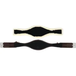 De Sheepskin Anatomic Girthsingel is speciaal gevormd en ontworpen om de natuurlijke beweging van het paard te volgen waardoor deze comfort en vrijheid biedt. De schouders en de ellebogen van het paard worden ontlast waardoor het paard beter kan ademen terwijl het risico op blessures nog steeds wordt gelimiteerd. De singel is aan beide zijden uitgerust met driedubbele elastiek om zo de druk gelijkmatig te verdelen, alsook heeft deze drie D-ringen om hulpteugels aan vast te maken. Er werd eveneens een karabijnhaak voorzien om de borstriem aan vast te maken.De singel bevat EVA-schuim aan de binnenzijde en is gemaakt van artificieel leder waardoor deze zeer gemakkelijk te onderhouden is. Het artificieel leder neemt geen zweet op waardoor deze niet uitdroogt en barsten vertoont of verkleurt. De artificiële wollen voering zorgt voor extra comfort. Deze kan worden losgemaakt van de singel aan de hand van klittenband en mag in de wasmachine gewassen worden op 30°, geen droger. De singel kan worden schoon gemaakt met onze Kentucky Horsewear Tack Cleaner. Deze werd speciaal ontwikkeld om artificieel leder proper te maken. Uiterst gemakkelijk en efficiënt!