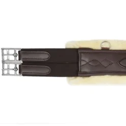 De Sheepskin Stud GirthSpecial heeft een pvc “basketbal” ontwerp dat het een zeer originele en andere look geeft. De wijde buiklap beschermt de buik van het paard tegen de hoefijzers of kalkoenen tijdens het springen. De Kentucky Horsewear buiklapsingel is anatomisch gevormd enbiedt comfort en bescherming tijdens het springen. De artificiële wollen voering wordt vastgemaakt aan de binnenzijde van de singel aan de hand van een stevigklittenband. Deze voering geeft een zeer aangenaam gevoel en is uiterst geschikt voor paarden met een gevoelige huid. De singel is gevuld met schokabsorberend EVA-schuim en is aan beide zijden uitgerust met driedubbele elastiek, alsook heeft deze drie D-ringen om hulpteugels aan vast te maken. Er werd eveneens een karabijnhaak voorzien om de borstriem aan vast te maken. De singel is gemaakt van artificieel leder waardoor deze zeer gemakkelijk te onderhouden is, geen zweet opneemt en dus geen barsten vertoont of verkleurt. De Buiklapsingel kan worden schoongemaakt met onze Kentucky Horsewear Tack Cleaner. Deze werd speciaal ontwikkeld om artificieel leder proper te maken. Uiterst gemakkelijk en efficiënt! Wasbaar in de wasmachine op 30°.