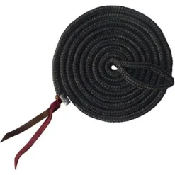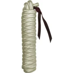Ethologische lijn van zacht polypropyleen zonder musketon, met bevestigingsgesp voor aan het halster aan het uiteinde en een dubbel handvat van leder aan het andere uiteinde.