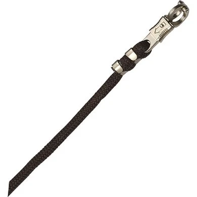 Soepel aanbind halstertouw voor kopschuwe paarden van polypropyleen met musketon met paniekhaaksluiting van gesatineerd grijs zink.