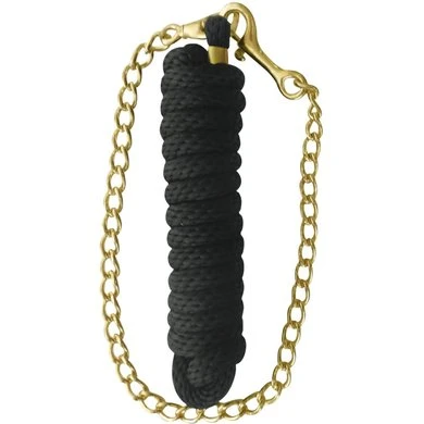 Lijn van zacht polypropyleen met ketting en vrijdraaiende, musketon van messing of van vernikkeld staal.