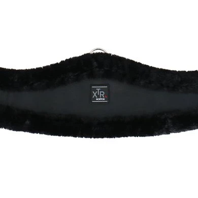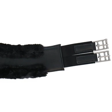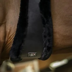Synthetische singel van leerachtig polyurethaan gevoerd met synthetisch schapenvacht met hoge dichtheid. Rolgespen aan dubbele elastische uiteinden. Beschikt over een centrale ring.