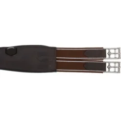De klassieke gebogen leren zadelsingel heeft aan beide zijden elastische uiteinden. Er is een D-ring in het midden voor het bevestigen van de borstplaat en een D-ring aan elke kant voor het bevestigen van hulpteugels.