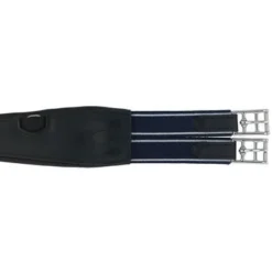 De klassieke gebogen leren zadelsingel heeft aan beide zijden elastische uiteinden. Er is een D-ring in het midden voor het bevestigen van de borstplaat en een D-ring aan elke kant voor het bevestigen van hulpteugels.